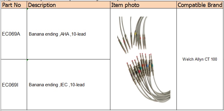 Comaptible Welch Allyn CT 100 ecg vezetékek, 10 vezetékes, csatlakoztassa az EKG kábelt