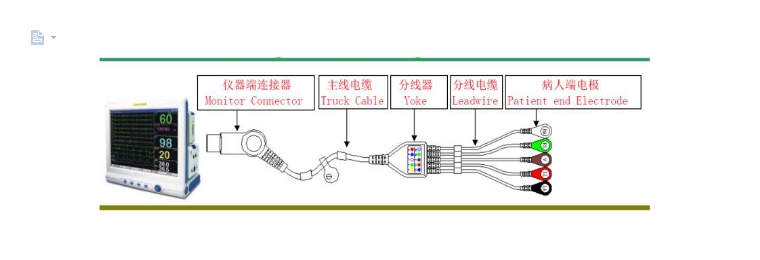 Jelentkezzen a többparaméteres monitorra / elektrokardiogrammú gépre / gyakorolja a futópadot vagy defibrillátort, átadja az emberi test bio-elektromos jelét. A beteg kábeleit és az elektróda vezetékeit arra használják, hogy az elektródákat, katétereket és / vagy érzékelőket a beteg megfelelő helyén elhelyezett megfigyelőberendezéssel összekötjék az általános megfigyelés és / vagy diagnosztikai értékelés céljából az egészségügyi szakemberrel