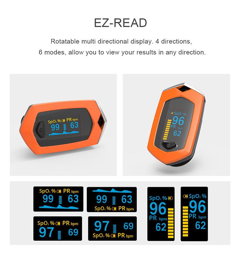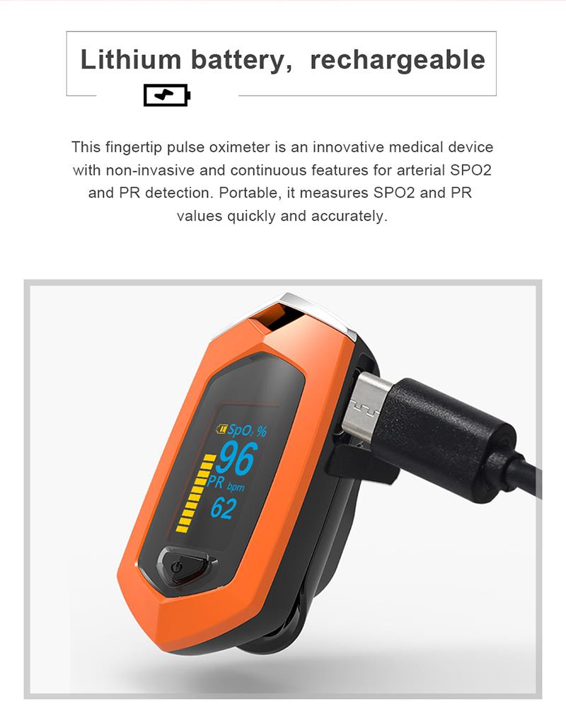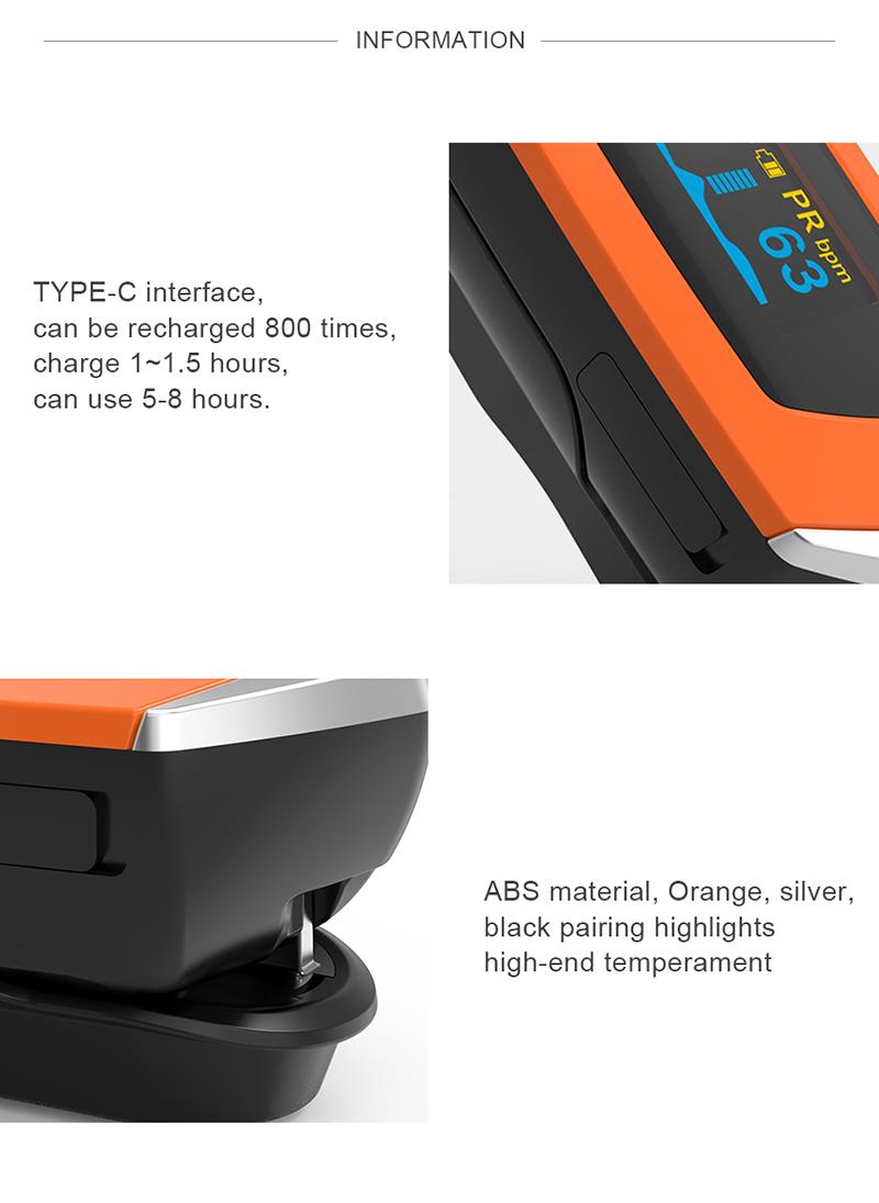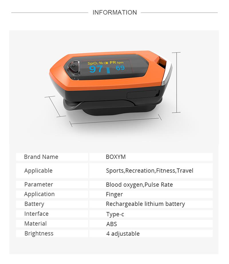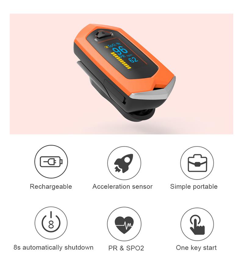 Egy kulcscsillag, Újratölthető, Gyorsulásérzékelő, 8 másodperces automatikus kikapcsolás, PR & SPO2 mérés, Egyszerű hordozható